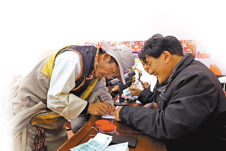圖為改則縣改則鎮(zhèn)圓夢(mèng)新居社區(qū)合作社分紅儀式現(xiàn)場(chǎng)。記者 達(dá)珍 永青 攝