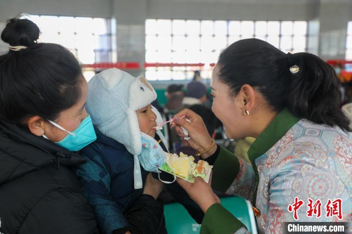 春運(yùn)首日,拉薩車務(wù)段在日喀則站候車大廳開(kāi)展“溫馨出行 文明出行”主題活動(dòng),火車站青年職工帶來(lái)了日喀則當(dāng)?shù)靥厣顝棾槁每退蜕蠝嘏奶鸩?,和旅客一起分享蛋糕慶祝日喀則站第十個(gè)春運(yùn)等活動(dòng),營(yíng)造出喜迎新春的節(jié)日氛圍。