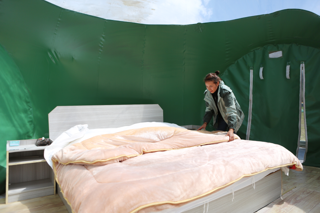 白瑪?shù)录退恼煞蛞蠛隙疾簧蒲赞o。他們的民宿緊鄰318國道,生態(tài)環(huán)境很好,旁邊的旅游景點(diǎn)也多,每個(gè)月大概能有3萬多元的收入,旺季則更好。在他們的共同努力下,這片民宿逐漸成為了他們的“一方天地”。