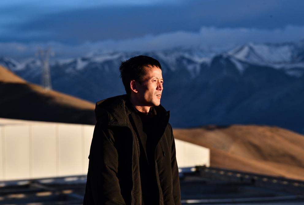 在阿里地區(qū)獅泉河鎮(zhèn)南部甲馬兒燈山海拔5100米的山頂上,我們見到了十年如一日守望璀璨星空的人——尤顯龍。他十八年前就開始為阿里天文臺的選址而工作,如今負(fù)責(zé)天文臺數(shù)據(jù)觀測和運(yùn)維設(shè)備。尤顯龍也是為阿里天文臺工作時(shí)間最長的一位工程師。