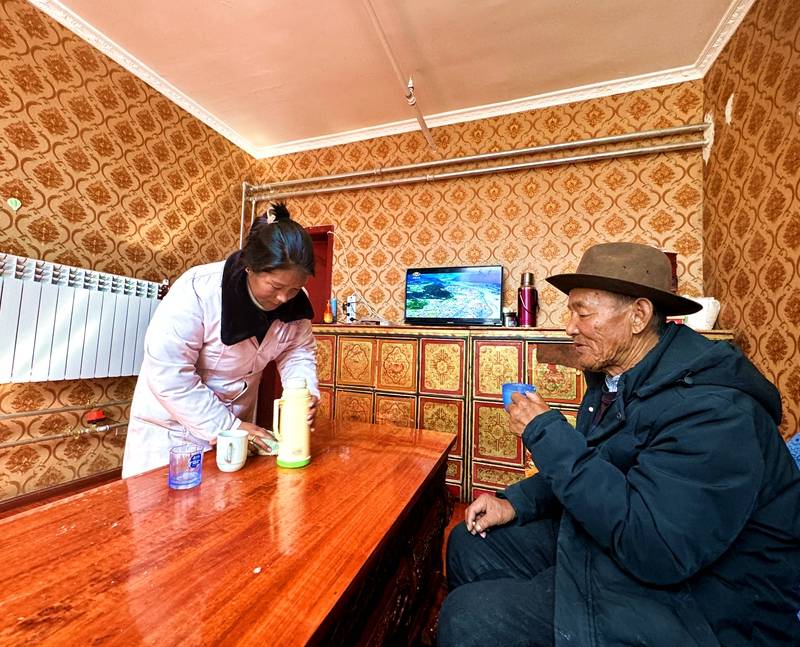 在75歲的瓊拉家里,干凈整潔的一居室暖烘烘的,一進門眼鏡瞬間起了霧。“今年家里通了暖氣,過上了一個暖烘烘的新年,暖了身子,也暖了咱們老人們的心吶!”瓊拉老人高興地摸著掛在墻上的暖氣片說道,這都是共產(chǎn)黨的恩情,讓我們這些孤寡老人過了一個溫暖祥和的藏歷新年。