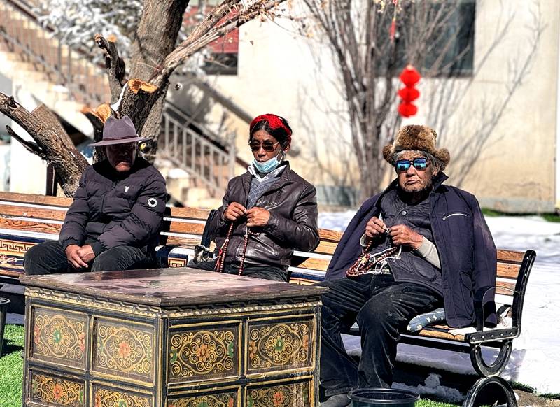 早晨11點多,在海拔4000多米的西藏自治區(qū)日喀則市拉孜縣,厚厚的積雪覆蓋了路面和車輛,室外溫度達零下十幾度,走進特困人員集中供養(yǎng)中心,三三兩兩的老人們坐在院子里的板凳上曬著太陽,開心地聊著天……