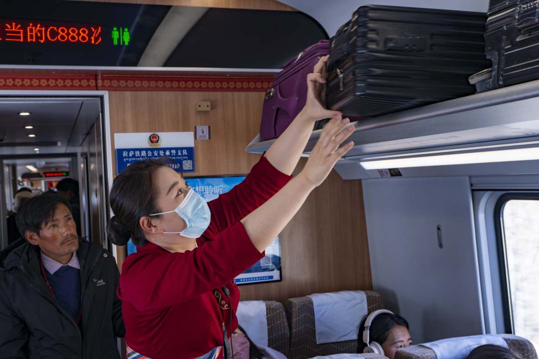 隨著春節(jié)及藏歷新年假期進(jìn)入尾聲,西藏春運迎來返程高峰。2月17日,記者跟隨來到了青藏鐵路拉薩至日喀則的列車上,同列車員一道感受春運高峰的忙碌。
