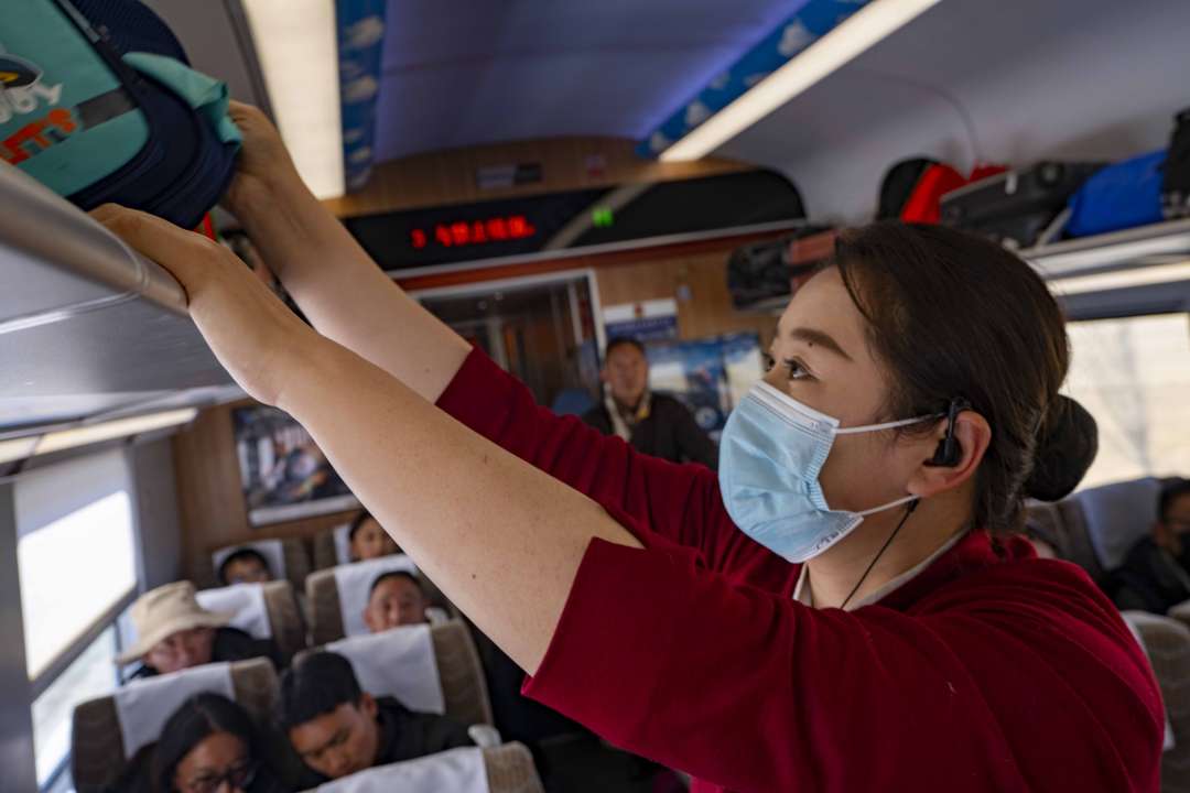 隨著列車從拉薩站緩緩開出,李丹開始了列車服務(wù)——邊走邊觀察邊詢問,她細(xì)心地觀察著乘客的情況?!斑@兩天是節(jié)后返程高峰,我們車班針對旅客年齡、身份等不同特點,進(jìn)行了歸納與分析,并根據(jù)不同群體的需求,整理溝通要點,收集服務(wù)案例,使我們的服務(wù)能更好地滿足不同旅客的需求?!崩畹ふf。