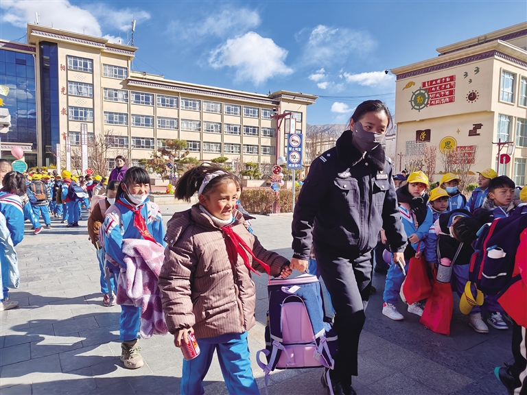 站在學(xué)校門口,等待孩子的家長央金感觸頗深,她告訴記者,每次開學(xué)前、開學(xué)時(shí)、開學(xué)后,都能看到民警們忙碌的身影。為學(xué)校家長提供幫助,為學(xué)生消除安全隱患,營造了安全、和諧、文明的校園環(huán)境,十分感謝他們?!敖裉靾?bào)到啦,我們看到警察叔叔和阿姨就覺得很安心、很開心?!睂?shí)驗(yàn)小學(xué)3年級10班學(xué)生白瑪娜薩說。
