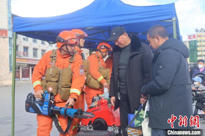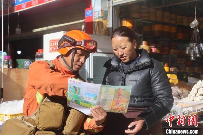 圖為消防員正在開展防火知識普及。西繞拉翁 攝