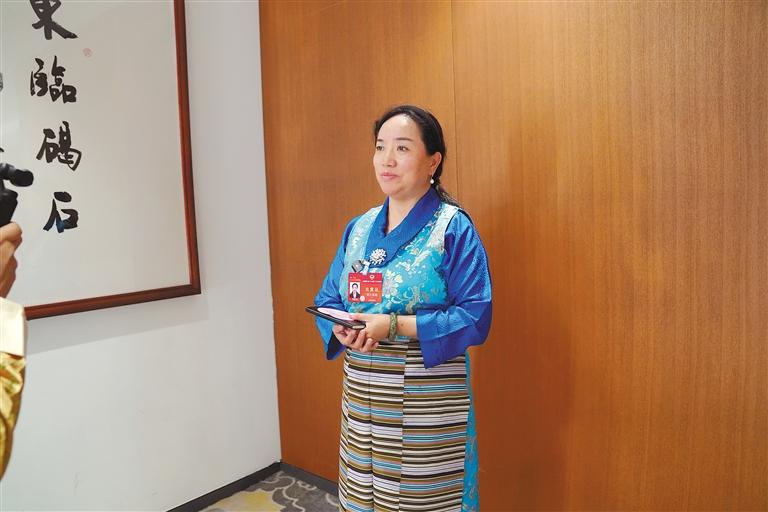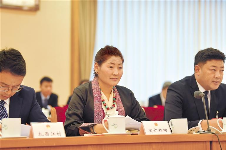 全國人大代表白瑪措在會上發(fā)言。  旦增西旦 攝