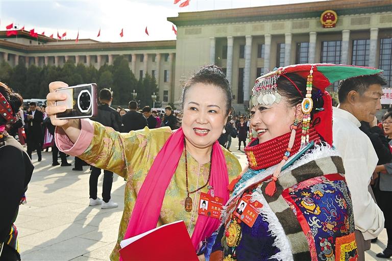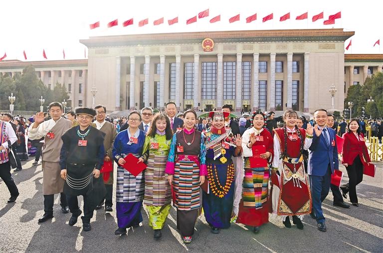 圖為閉幕會(huì)結(jié)束后,西藏全國(guó)人大代表信心滿懷走出會(huì)場(chǎng)。旦增西旦 攝