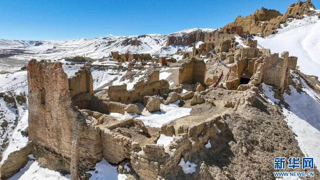 達巴遺址位于西藏阿里地區(qū)札達縣境內,其主要建筑分布在兩座山脊之上,整個遺址共有洞穴200余處,且有獨立的碉樓、寺廟建筑遺跡、居民窯洞等建筑,在白雪的映襯下,顯得格外雄渾而神秘。