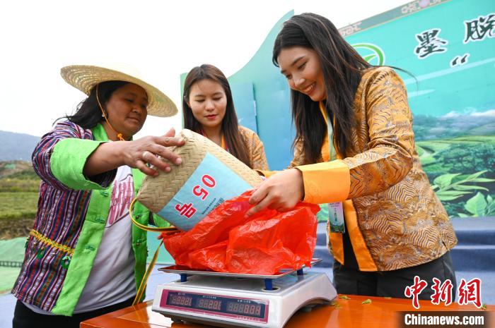 圖為在工作人員見證下,采茶選手將茶青稱重。趙朗 攝