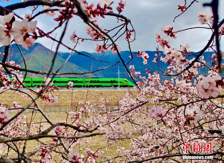 四月伊始,拉林鐵路沿線的桃花迎來了盛開時節(jié),藍天白云下,一朵朵桃花漲紅了臉頰,與遠處的雪山交相輝映,吸引了不少游客來感受高原春天的獨特魅力。當一列列火車穿過花海,映入眼簾的皆是滿山遍野的桃花,讓人仿佛置身于秀美的江南之中。圖為拉林鐵路沿線桃花盛開。馬生明 攝