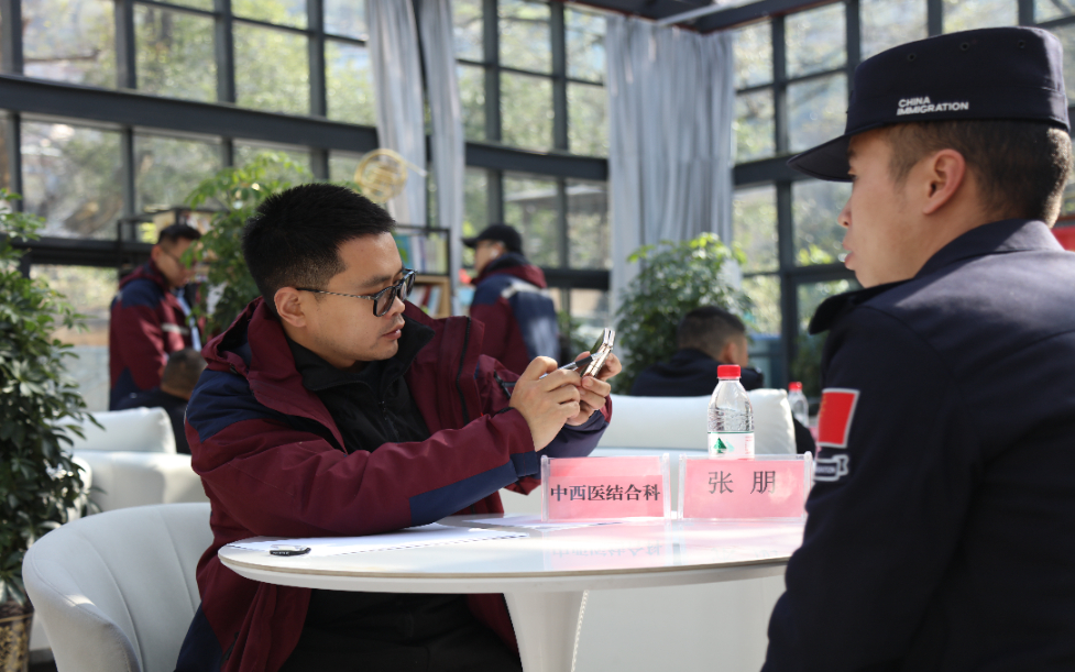 圖為義診醫(yī)生對(duì)邊檢站民警的體檢報(bào)告進(jìn)行分析。 (受訪單位供圖)