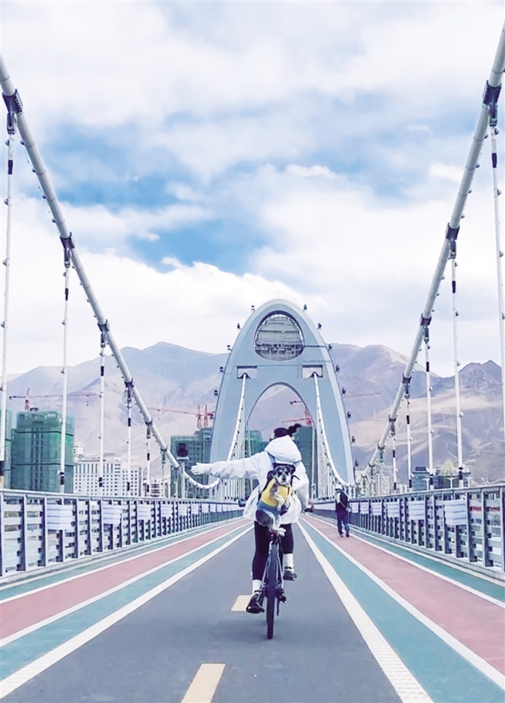 走訪過程中,記者了解到,當(dāng)前市民熱衷騎行出門的原因不一,或考慮性價(jià)比,或是為了圓兒時(shí)的騎行夢(mèng),但更多的是為欣賞春日的拉薩街頭風(fēng)光。微風(fēng)中搖曳的嫩柳,街道上被車流帶起的紫葉李花瓣,混著花香與泥土清香的空氣……在閉塞的車窗中,人們或許會(huì)因復(fù)雜的路況、不斷調(diào)換的擋位與堵車的煩悶而錯(cuò)過這些近在咫尺的春景,但騎行不會(huì)?!斑@么美的春日,我可不想只在車窗里感受它?!笔忻顸S沐薇說(shuō)。