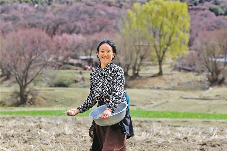 一輛紅色的旋耕機在田地旁停下來,曲美仁增邊換犁頭,邊感嘆著科技帶來的便捷:“以前耕地全靠牲畜,費時耗力,現(xiàn)在開著旋耕機就把地耕完了,聽著這機器轟隆隆的聲音,我覺得格外開心,好像在說我們尼屋的春天特別美,我們的生活肯定也會更幸福!”