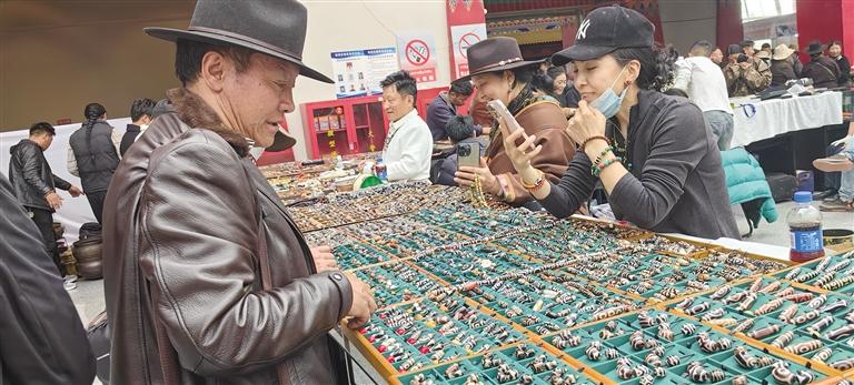 記者在展廳看到,參展商家攤位分布有序,前來(lái)購(gòu)買各種珠寶、藝術(shù)品的顧客絡(luò)繹不絕?;顒?dòng)現(xiàn)場(chǎng),匯聚了來(lái)自全國(guó)各地的珠寶商、藝術(shù)家、收藏家及投資者。博覽會(huì)期間,主辦方舉辦了珠寶、藝術(shù)品鑒定評(píng)估等商貿(mào)活動(dòng),以及珠寶藝術(shù)品講座、研討會(huì)等文化交流活動(dòng),為與會(huì)者提供了一個(gè)全面了解西藏珠寶及藝術(shù)品的機(jī)會(huì),同時(shí)也為珠寶商、藝術(shù)家和投資者搭建了一個(gè)交流與合作的平臺(tái)。文/圖 記者 張雪芳
