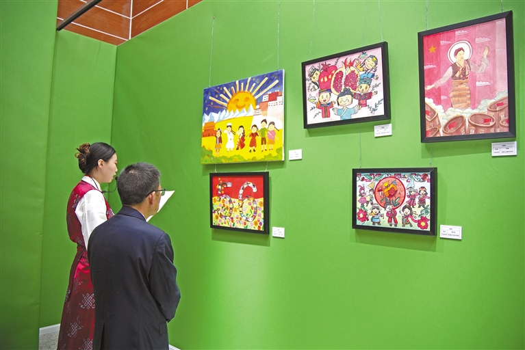 美術(shù)一等獎(jiǎng)作品《民族團(tuán)結(jié)·多彩童年》。作者 趙瑞