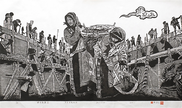 美術(shù)二等獎(jiǎng)作品《鑄牢新家園》。 作者 斯單巴