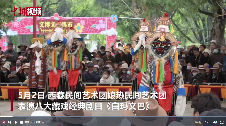 5月2日,西藏民間藝術團娘熱民間藝術團表演八大藏戲經(jīng)典劇目《白瑪文巴》。“五一”假期,“經(jīng)典劇目進景區(qū) 特色演出進劇院”惠民文藝演出在羅布林卡進行,吸引市民游客爭相觀看。藏戲集說唱、表演、歌舞、文學于一體,有著600多年歷史,被譽為藏文化的“活化石”。(李林 制作 劉鵬)