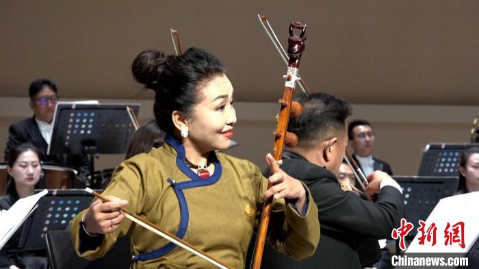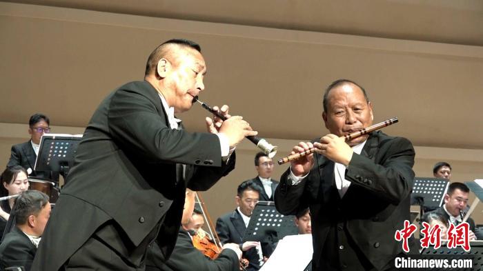 圖為在音樂會(huì)上嗩吶、笛子與樂隊(duì)演奏。貢桑拉姆攝