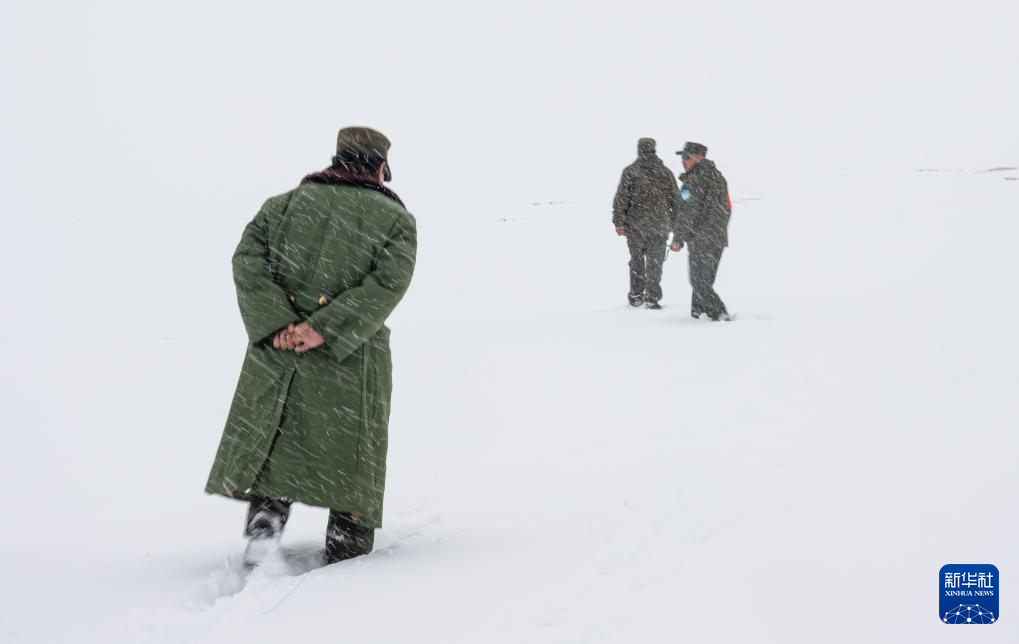 野生動物專業(yè)管護隊員冒著風(fēng)雪趕到無人區(qū)深處的布查玉管護站(5月7日攝)。新華社記者 姜帆 攝
