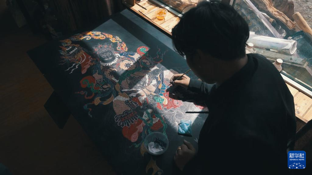 “漆畫的表現(xiàn)是自由的、包容的,可以實現(xiàn)唐卡想要的多種效果!”隨著學(xué)習(xí)深入,仁青郎加對唐卡漆畫的理解更深了一分。