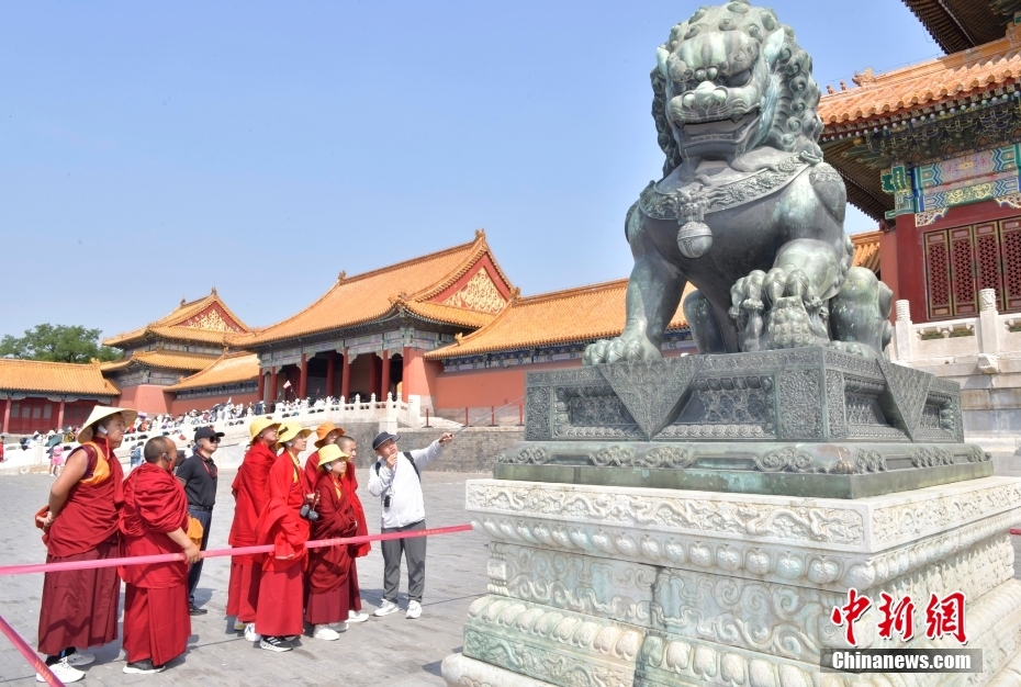 5月19日至23日,西藏少年活佛參學(xué)團(tuán)來到北京參觀學(xué)習(xí),在清代藏傳佛教皇家寺院知古鑒今。圖為5月21日,西藏少年活佛參學(xué)團(tuán)到北京故宮博物院參訪。