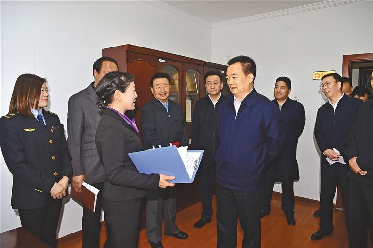 5月29日上午,自治區(qū)黨委書(shū)記王君正前往自治區(qū)市場(chǎng)監(jiān)督管理局、自治區(qū)商務(wù)廳等單位調(diào)研。這是王君正在自治區(qū)商務(wù)廳認(rèn)真聽(tīng)取全區(qū)商務(wù)工作情況介紹。本報(bào)記者 旦增西旦 攝