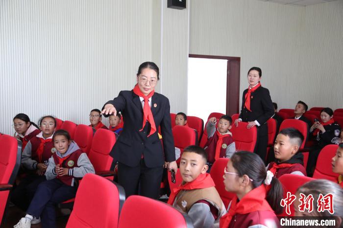 圖為瓊結(jié)縣人民法院院長解松娟正在為學(xué)生們講解庭審過程。倫珠澤仁攝