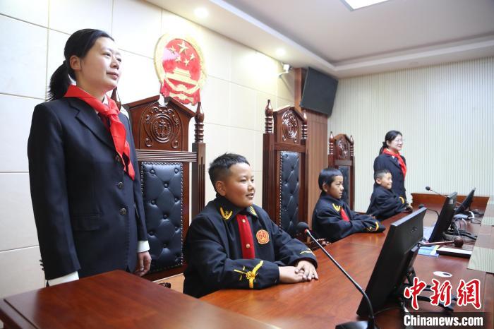 圖為學(xué)生們在法官的帶領(lǐng)下沉浸式體驗?zāi)M法庭。倫珠澤仁攝
