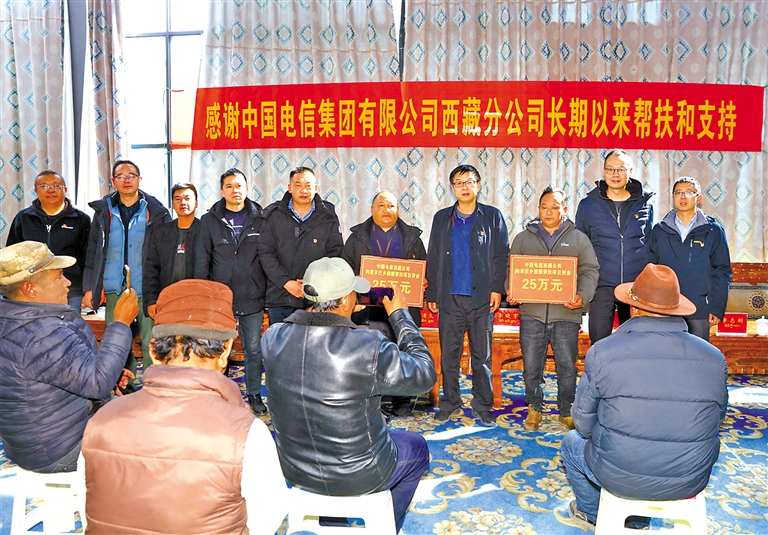 中國電信西藏公司黨委書記、總經理周清久代表公司向霍爾巴鄉(xiāng)和吉拉鄉(xiāng)分別捐贈25萬元幫扶資金。