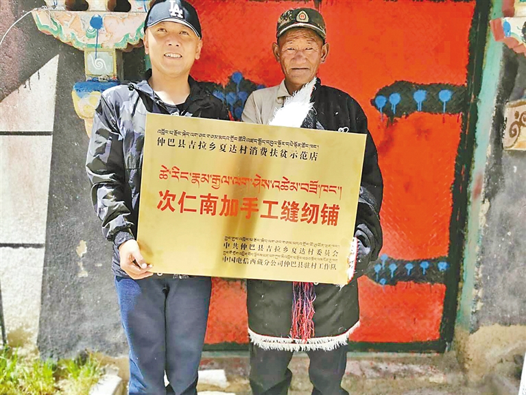 中國電信西藏公司第九批駐村工作隊隊長格桑頓珠協助建檔立卡戶次仁南加成立了次仁南加手工縫紉鋪。