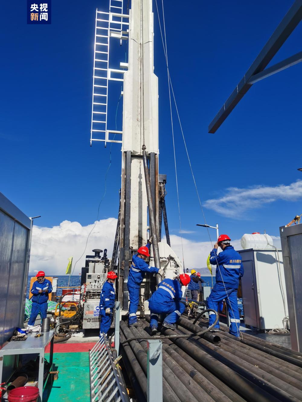 納木錯(cuò)國(guó)際大陸科學(xué)鉆探計(jì)劃是由中國(guó)科學(xué)院青藏高原研究所湖泊與環(huán)境變化研究團(tuán)隊(duì)聯(lián)合德國(guó)、瑞士、英國(guó)和美國(guó)等多國(guó)科學(xué)家及鉆探技術(shù)人員共同實(shí)施的,科考隊(duì)員達(dá)70人。納木錯(cuò)位于青藏高原腹地,湖面海拔4718米,是亞洲水塔的核心區(qū)之一,湖面面積2020平方公里,是西藏第二大湖。它是我國(guó)水量最大的湖泊,湖水容積870億立方米,相當(dāng)于2.2個(gè)蓄滿水的三峽水庫(kù)的庫(kù)容??瓶缄?duì)負(fù)責(zé)人之一、中國(guó)科學(xué)院青藏高原研究所研究員王君波告訴記者,聯(lián)合科考隊(duì)從6日開始在納木錯(cuò)湖面上的三個(gè)點(diǎn)位,計(jì)劃共鉆取近1000米長(zhǎng)度的湖泊巖芯,并有望在其中一個(gè)點(diǎn)位獲得透底湖芯??瓶夹袆?dòng)所使用的鉆探平臺(tái)面積約200平方米。