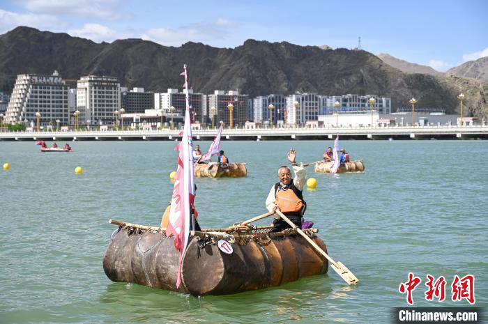 圖為牛皮船比賽現(xiàn)場。貢嘎來松 攝