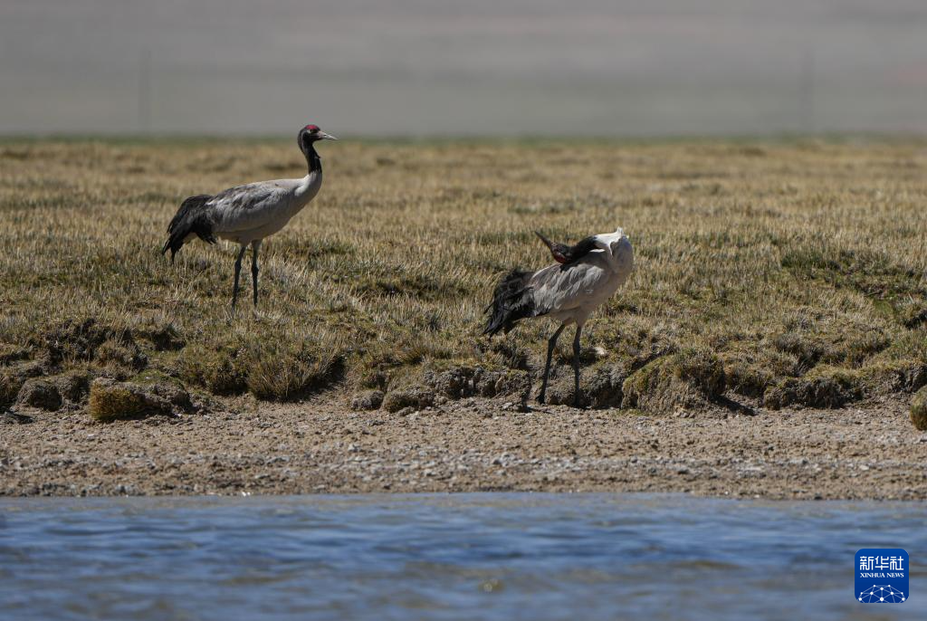這是在濕地拍攝的黑頸鶴(6月8日攝)。新華社記者 晉美多吉 攝
