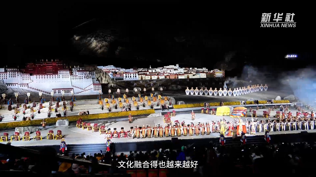 《文成公主》大型史詩(shī)劇是游客來(lái)西藏必打卡的文化產(chǎn)品之一。該劇以拉薩自然山水為背景,講述了1300多年前文成公主與松贊干布和親的歷史故事。全劇分為五幕,時(shí)長(zhǎng)大約100分鐘,演職人員數(shù)量眾多。從首演至今,《文成公主》大型史詩(shī)劇向全國(guó)各地游客展現(xiàn)了西藏傳統(tǒng)文化的魅力。