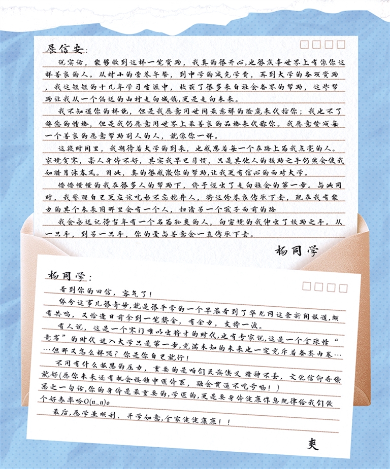 一位名叫葉珺的女生,看到江西勵(lì)志女孩佳琦的報(bào)道后,給這位千里之外素未謀面的“妹妹”寫了一封信,“我本來不輕易跟別人說自己的經(jīng)歷,但是看到佳琦的情況后特別感同身受,我覺得將自己的心聲傳達(dá)給這個(gè)小妹妹很有意義?!?/p>