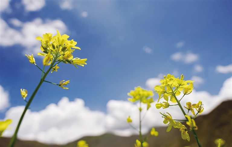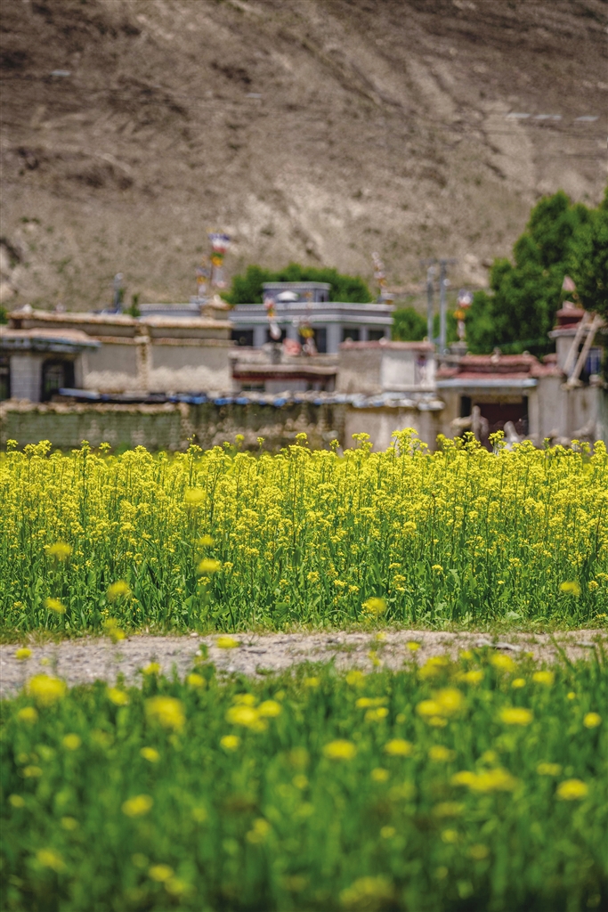 西藏的春天可以欣賞桃花,夏天可以欣賞什么花?那當(dāng)然是油菜花。近期,西藏各地迎來了油菜花盛開的季節(jié)。行走在夏日的農(nóng)田里,金黃色的油菜花給綠意盎然的農(nóng)田增添了幾分色彩。放眼望去,在藍(lán)天白云的映襯下,油菜花海如同金黃色的毯子般鋪展開來,花海在微風(fēng)中輕聲搖曳,與一旁的道路、錯(cuò)落有致的村居共同構(gòu)成了一幅和諧美麗的田園風(fēng)景圖。