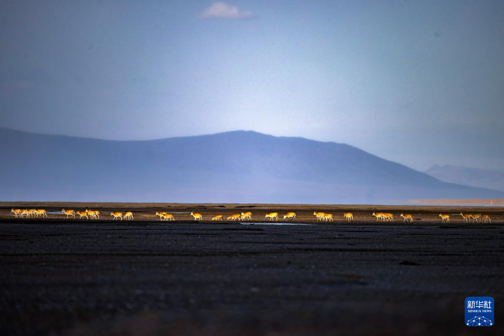 6月13日傍晚,在羌塘國家級自然保護區(qū),一群藏羚羊在遷徙。新華社記者 費茂華 攝