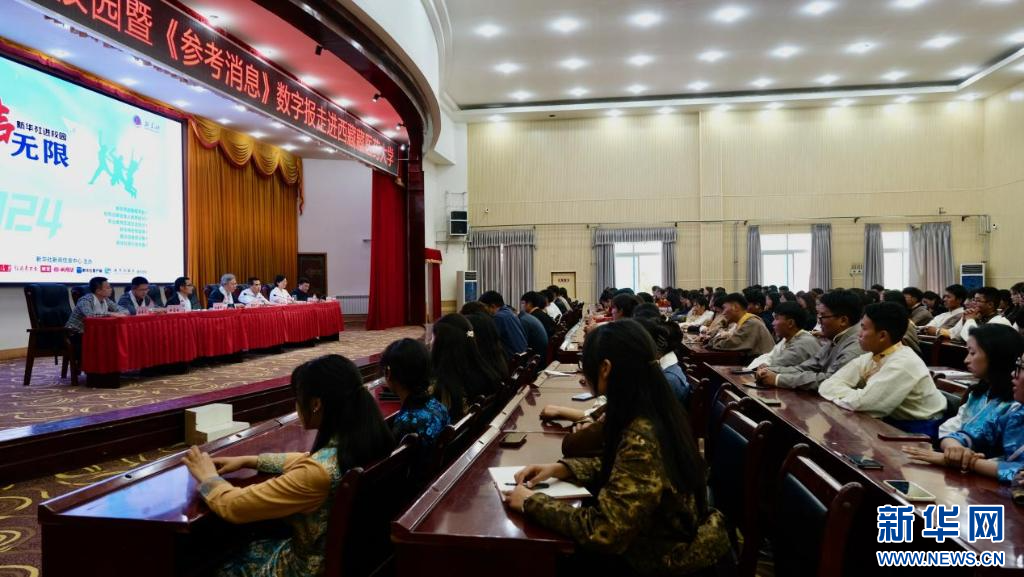 20日,“新聲無限——2024年新華社進校園活動”在西藏藏醫(yī)藥大學(xué)舉行。新華社參考消息報社向西藏藏醫(yī)藥大學(xué)贈閱了《參考消息》數(shù)字報。參考消息報社總編輯陶德言,新華社西藏分社分黨組成員、副社長林建楊和西藏藏醫(yī)藥大學(xué)黨委書記、副校長鞠明兵致辭,西藏藏醫(yī)藥大學(xué)黨委委員、副校長于廣琮主持活動儀式,參考消息報社專題室主任田寶劍 與到場師生進行面對面分享交流。