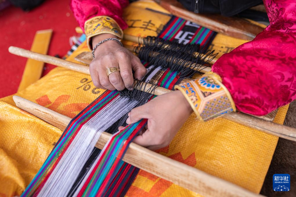 在那曲市雙湖縣,農(nóng)牧民選手邊曲在參加手工編織技藝比賽(6月20日攝)。新華社記者 丁增尼達 攝