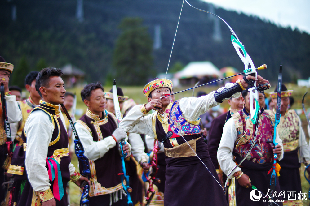 工布牧歌旅游文化節(jié)上,當?shù)卮迕裾趨⒓由浼荣?。人民日報記?瓊達卓嘎攝