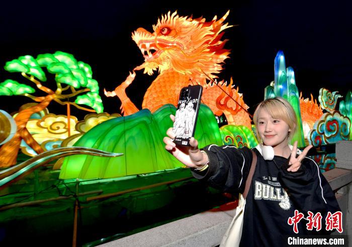 7月1日晚,布達(dá)拉宮腳下的宗角祿康公園“點(diǎn)亮拉薩—秦淮燈會(huì)”亮燈。燈會(huì)設(shè)17個(gè)點(diǎn)位、50個(gè)燈組,將持續(xù)至9月30日。圖為市民央金在燈會(huì)上拍照留念。中新社記者 李林 攝