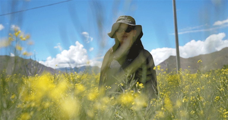 7月初,記者一行驅車從拉薩出發(fā),在開往錯那市的路上,經過了瓊結縣百畝油菜花和隆子縣錯落有致的油菜花田。烈日下,油菜花是這片大地的“主角”,是山南市每年盛夏從不缺席的芬芳。一路走來,油菜花肆意地盛開在道路兩旁、村莊里、半山腰……微風拂過,花朵搖曳生姿綻放著,從稍遠處看,俗坡奴村錯落分布在黃綠交錯的田野中,仿若一幅美麗清新的鄉(xiāng)村田野詩畫。此時,看風景的行人紛紛鉆進花田中,仿佛是跟油菜花“爭芳斗艷”。