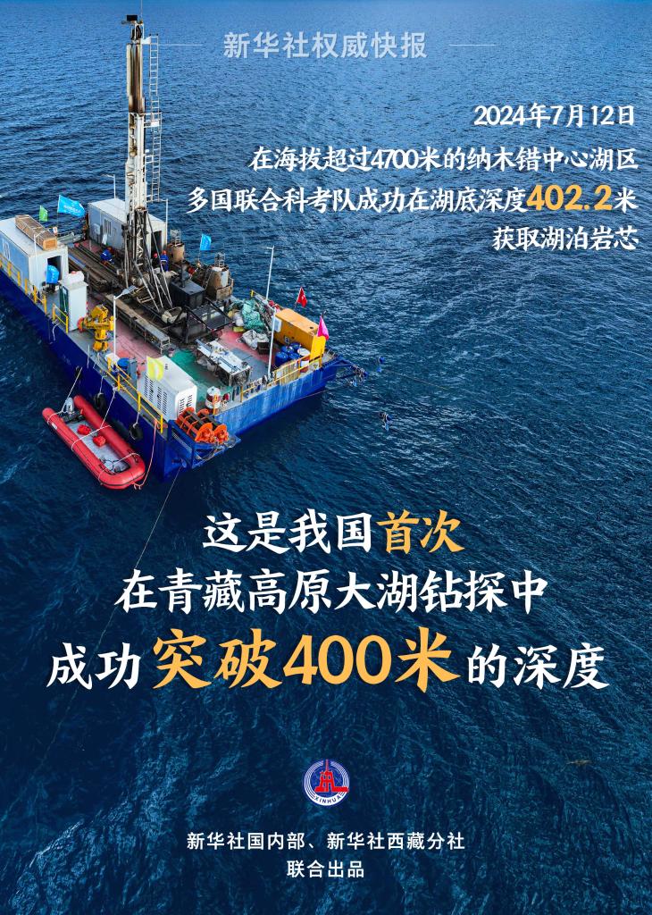 納木錯湖泊科考正在緊密開展。7月12日18時35分,在海拔超過4700米的納木錯中心湖區(qū),多國聯(lián)合科考隊經(jīng)過不懈努力,成功在湖底深度402.2米的地方獲取了湖泊巖芯。這是我國首次在青藏高原大湖鉆探中成功突破400米深度,對我國湖泊鉆探與古氣候的研究具有重要意義。