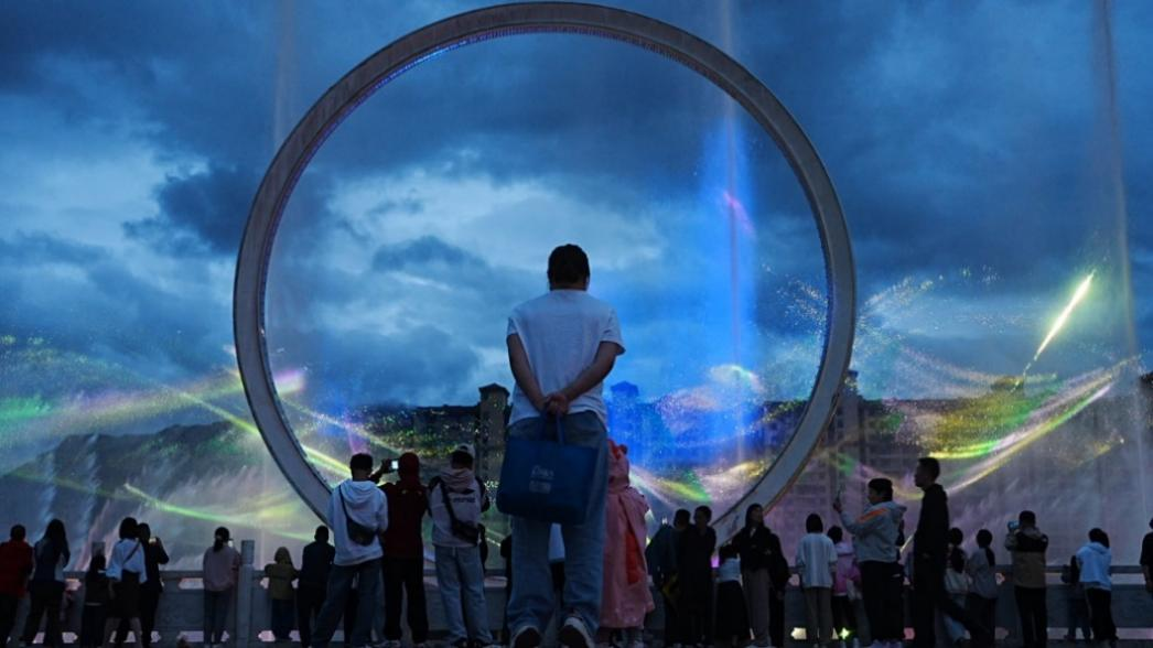 林芝市工布公園里的夢(mèng)幻水秀表演(7月21日攝)。姚翔碩 攝