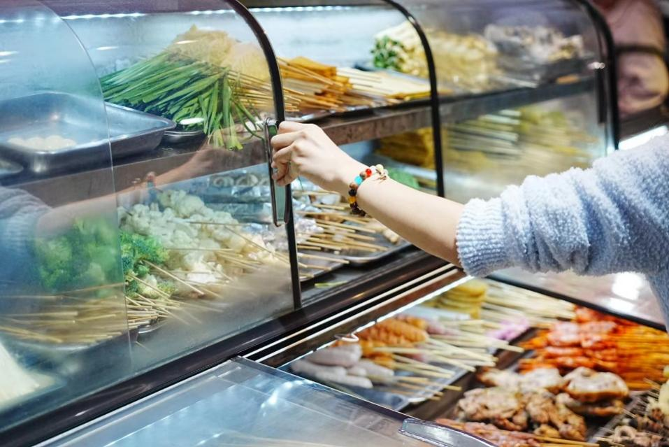 林芝市幸福夜市擺攤的各種美食(7月21日攝)。姚翔碩 攝??