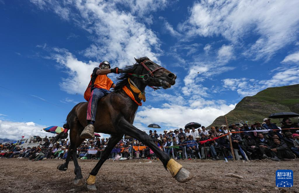 7月23日,選手在拉薩甘丹曲果鎮(zhèn)賽馬場參加走馬比賽新華社記者 晉美多吉 攝