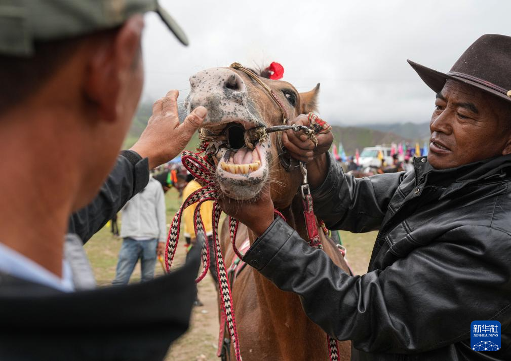 7月23日,工作人員檢查馬的牙口是否符合比賽不同組別等級的劃分。 新華社記者 晉美多吉 攝