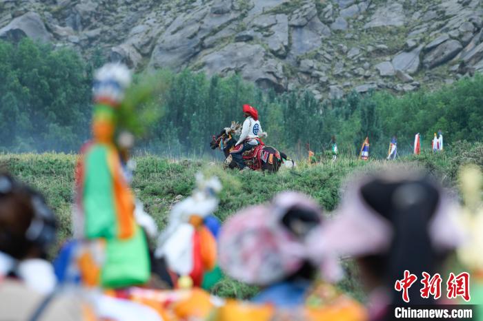 7月24日,西藏拉薩市曲水縣南木村迎來了一年一度的“望果節(jié)”。當日,村民們盛裝打扮背上經文,圍繞全村田園轉上一圈,轉到每一塊農田前都要煨桑祈求風調雨順、五谷豐登。“望果節(jié)”民俗已有1500多年的歷史,是國家級非物質文化遺產。圖為曲水縣南木村村民身著盛裝騎馬繞田。中新社記者 貢嘎來松 攝