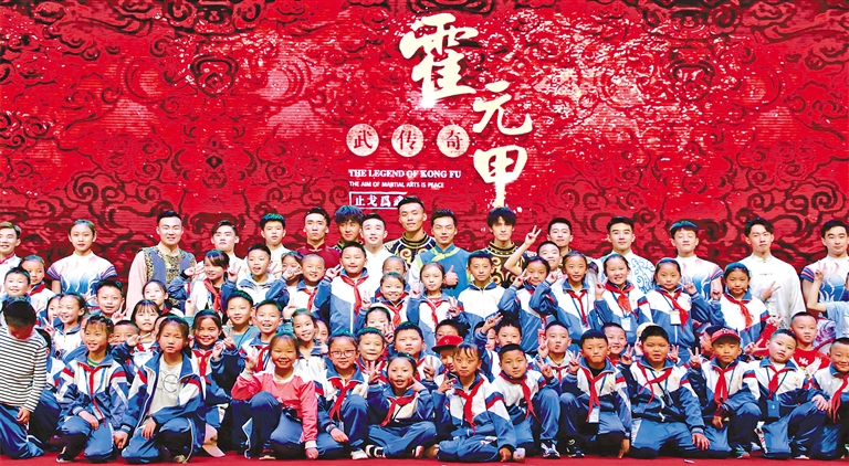 天津霍元甲文武學?!熬湮幕M西藏”活動在昌都成功舉辦,昌都市實驗小學學生觀看表演后與演員合影留念。